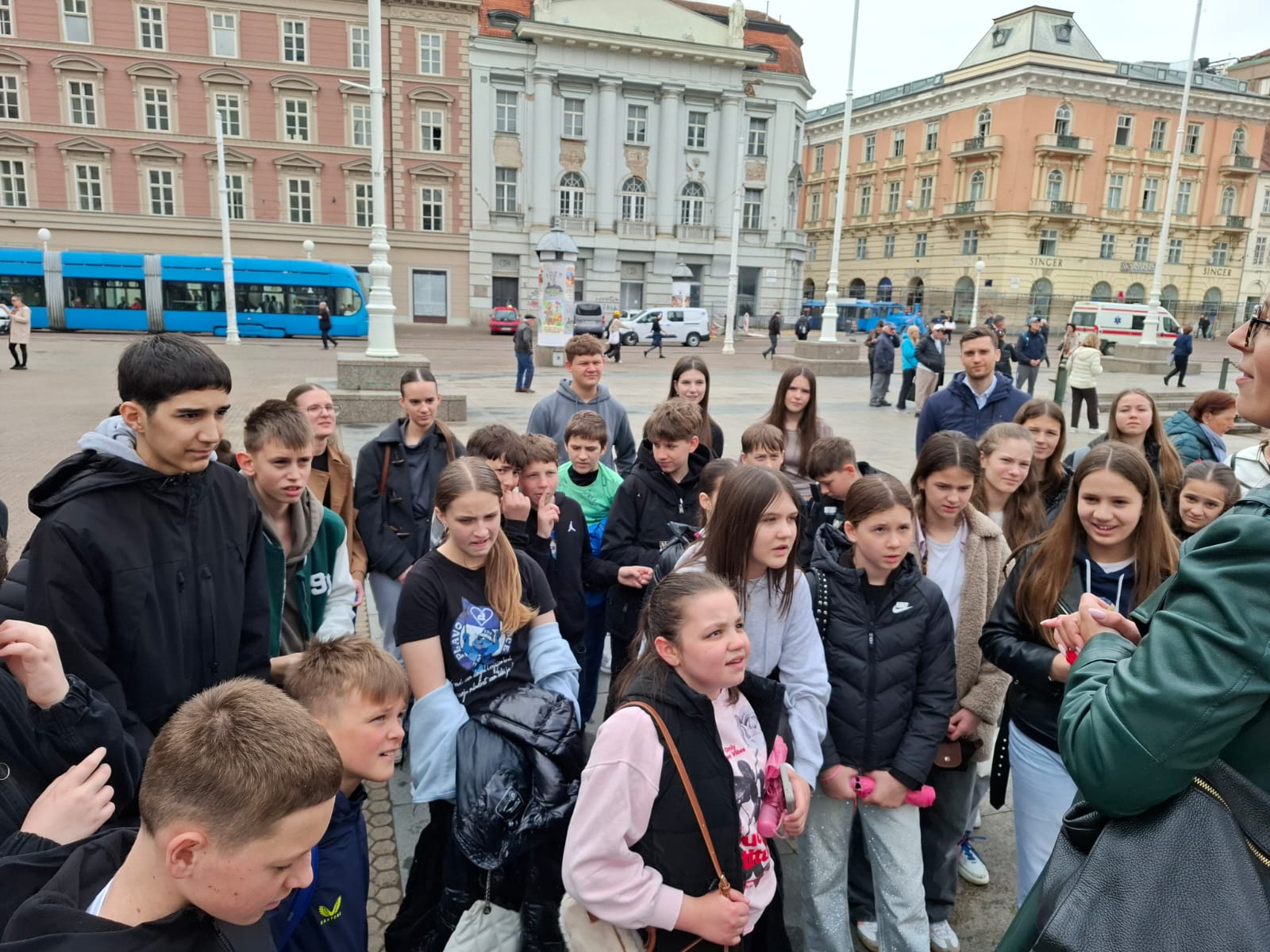 Prva postaja bila je veličanstvena zgrada Hrvatskoga narodnog kazališta (HNK), gdje su učenici doznali više o kulturnoj povijesti grada. Nakon toga, pod vodstvom simpatične turističke vodičice Ive, krenuli su u detaljno razgledavanje gradskih ulica. Iva je svojim pričama uspjela oživjeti povijest, a učenici su s velikim zanimanjem pratili svaku njezinu riječ.